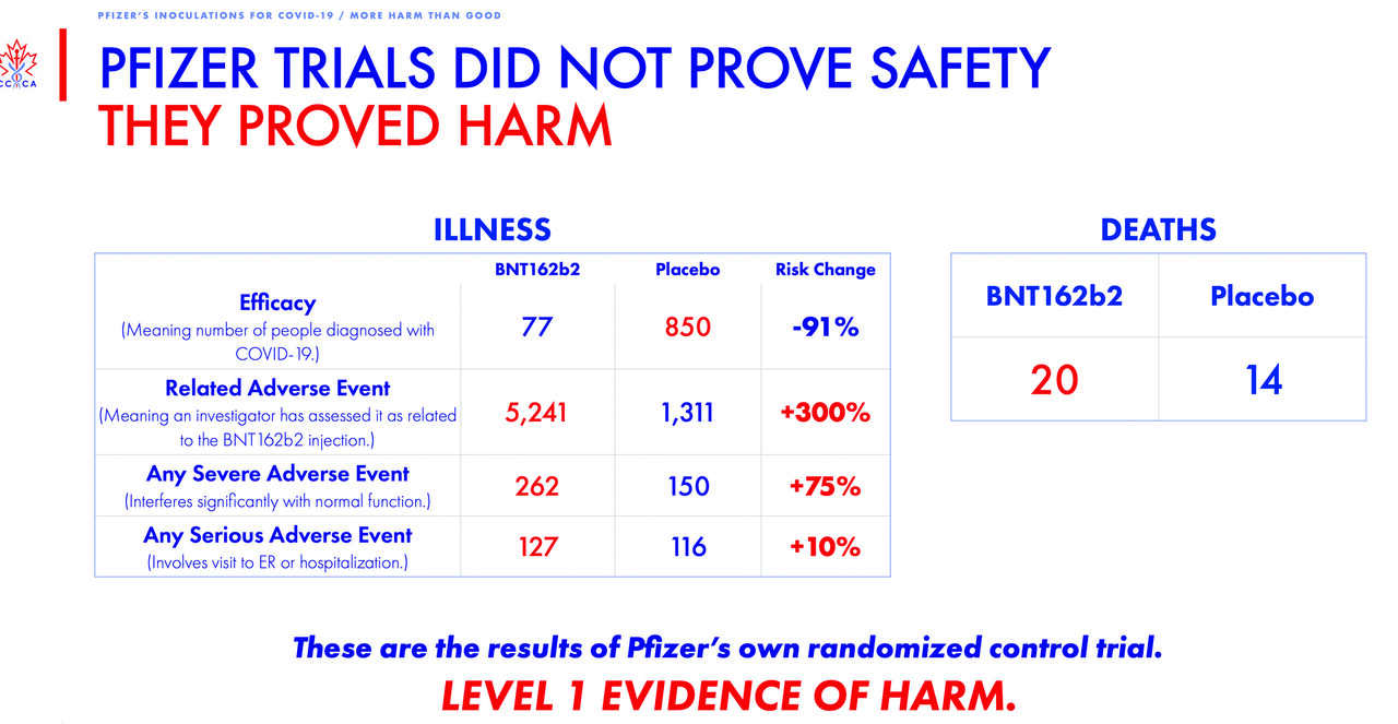 A group of over 500 independent Canadian doctors, scientists, and health care practitioners known as the Canadian Covid Care Alliance (CCCA) CanadaCovidCareAlliance.org, recently released a groundbreaking analysis of Pfizer’s recently published 6-month core clinical trial data set with enormous implications.