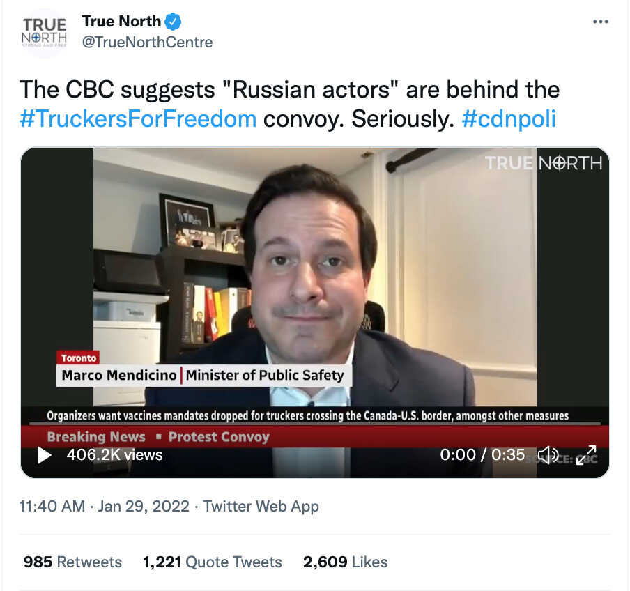 While CBC’s attempt to claim Russia is behind the convoy is laughable in its absurdity and desperation, it is also dangerous, because it shows the attitude that exists in the CBC and in the government.